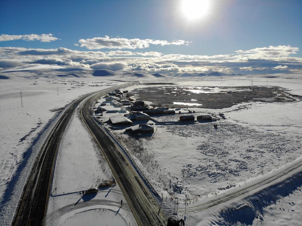Öte yandan Hanlar mevkiinde bulunan evler kar altında kalırken, hemen evlerin sonunda bulunan Çalı Gölü ise kısmen doldu. Kentte hava sıcaklığı eksi 7 derece ölçüldü.